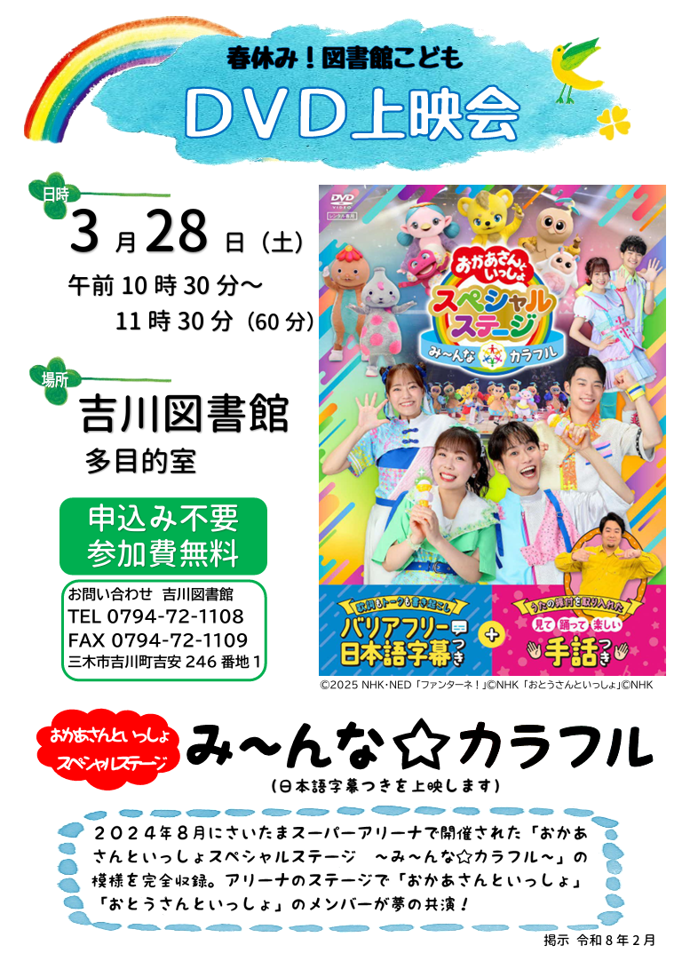 春休み!図書館こどもDVD上映会のポスター [その他のファイル/1014KB]