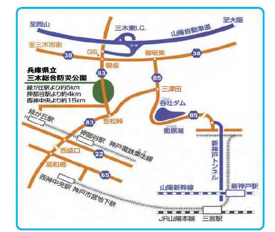 大会当日は、神戸電鉄「緑が丘駅」から会場となる「三木総合防災公園」までシャトルバスが午前8時30分から、約20分間隔でピストン運行します。